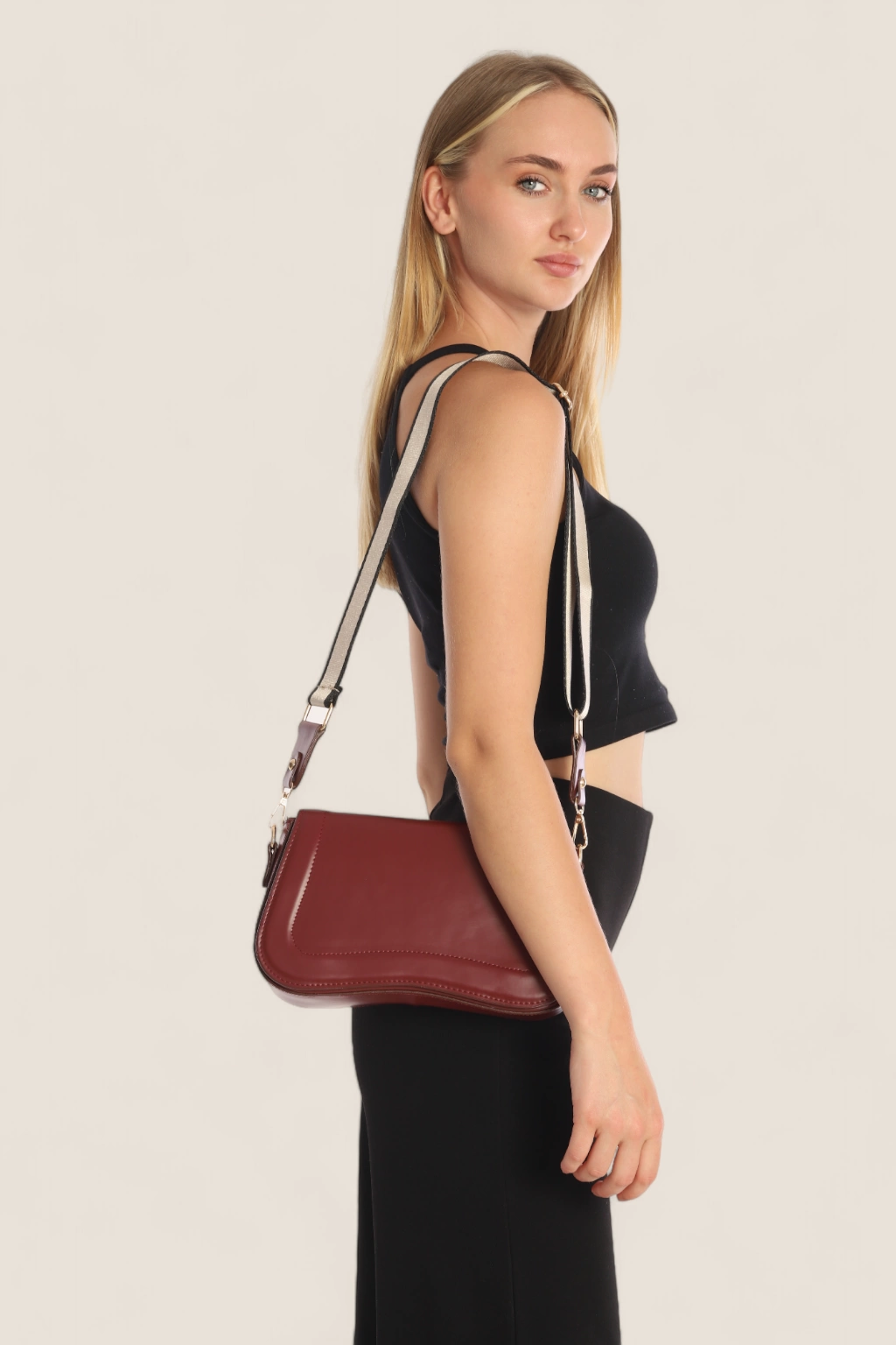 LADY Süet Astarlı Askılı Baget Çanta Bordo