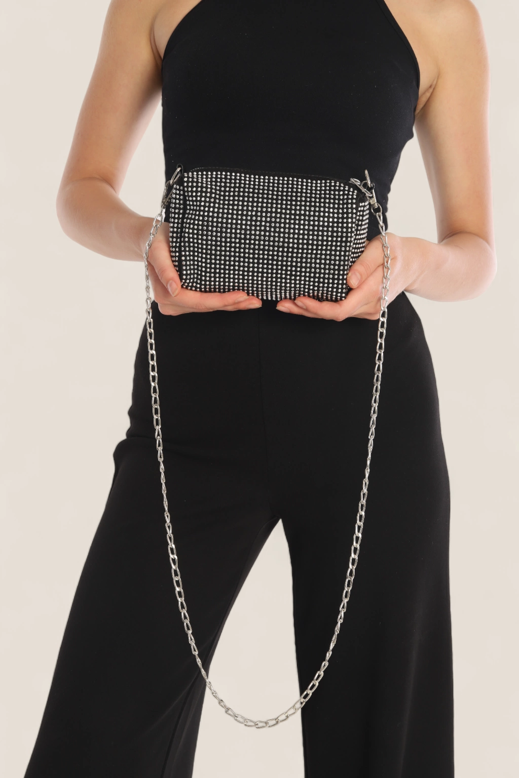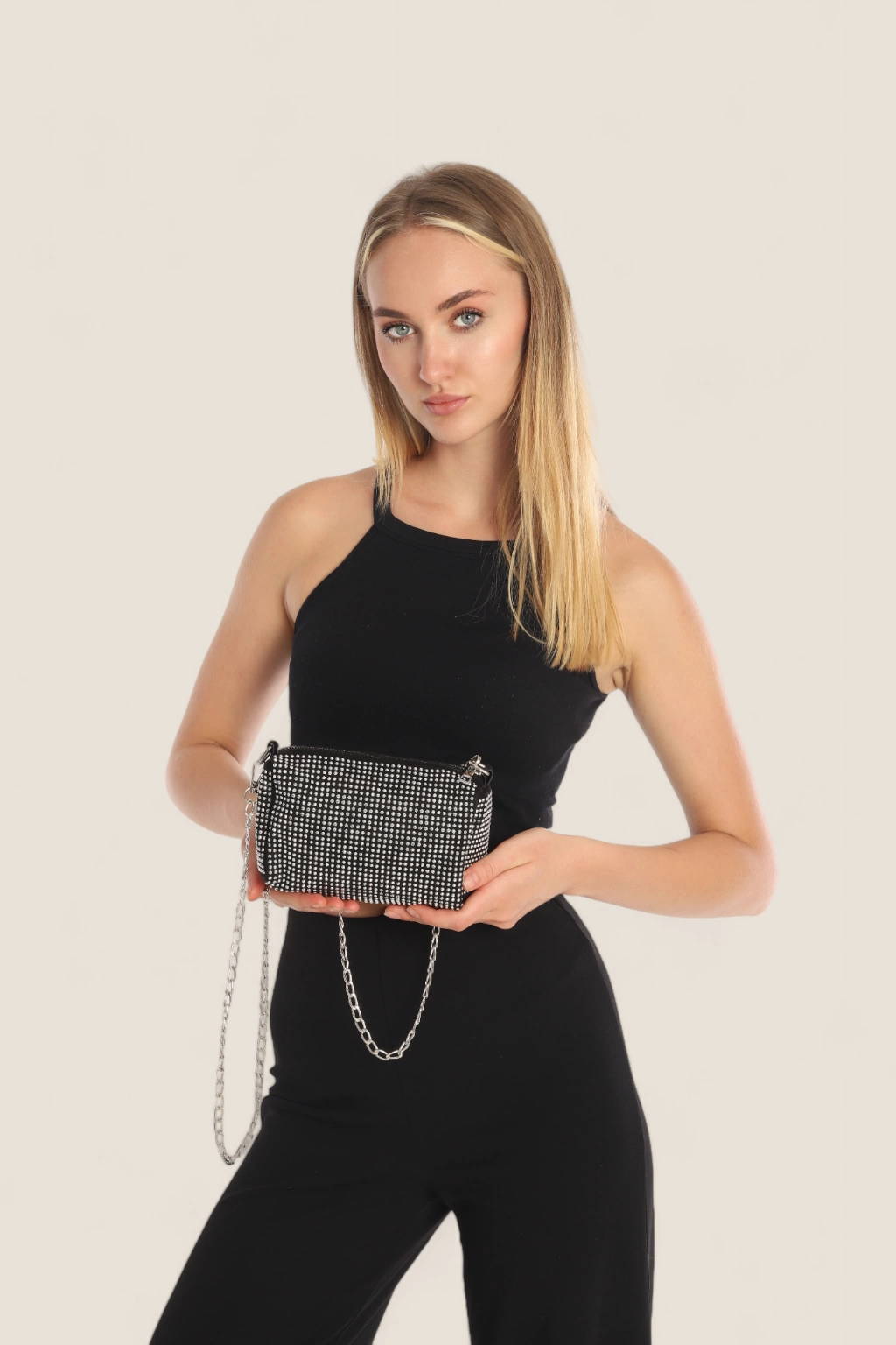 KULLANILABİLİRLİK: METAL ZİNCİR ASKILI VE GENİŞ İÇ HACİMLİ TAŞLI ÇANTA