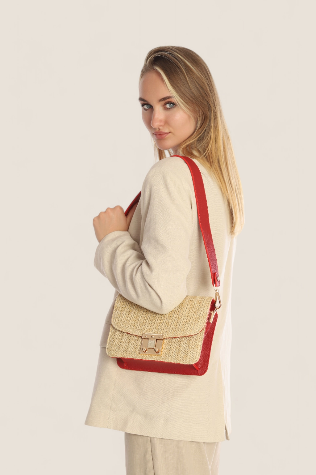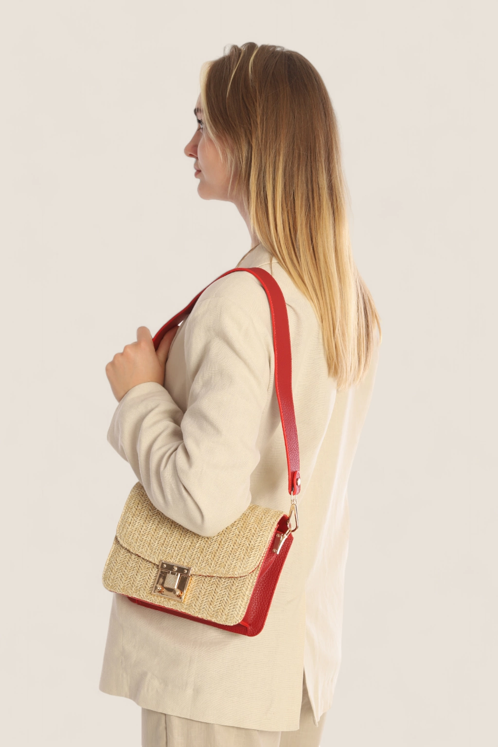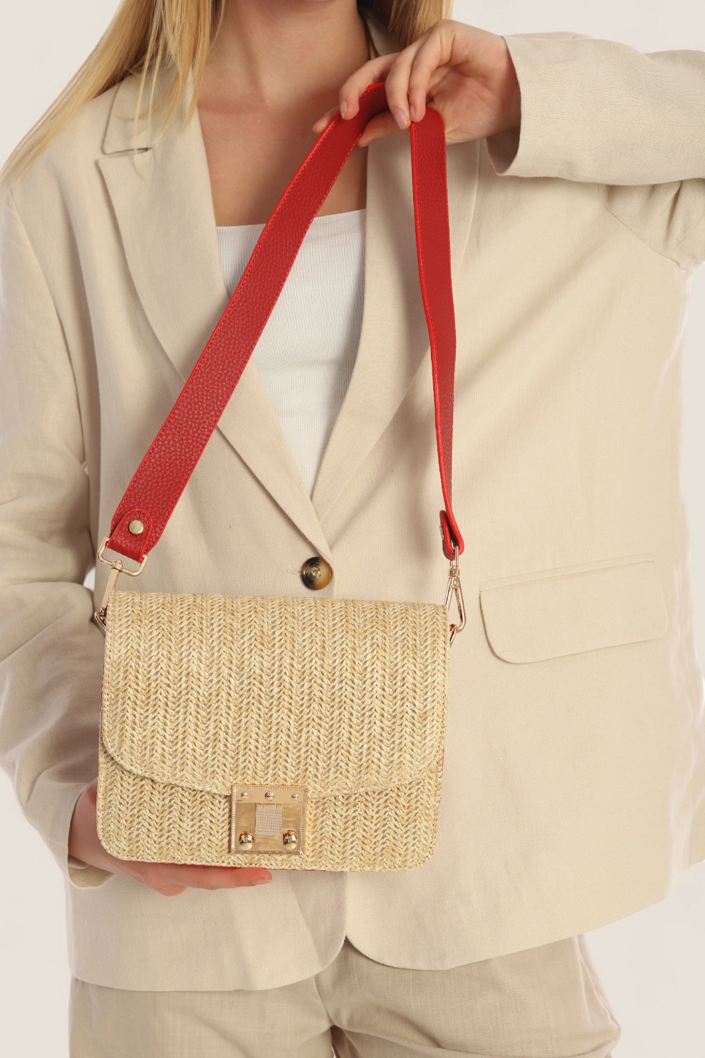 MIA Hasır Çanta Kırmızı